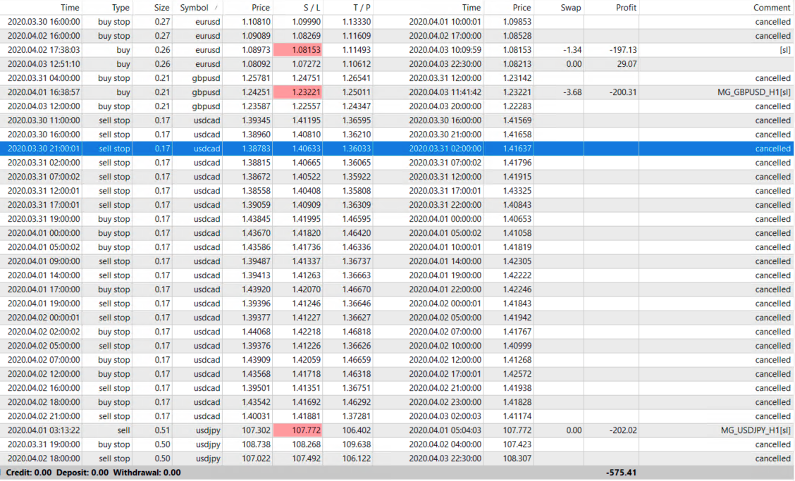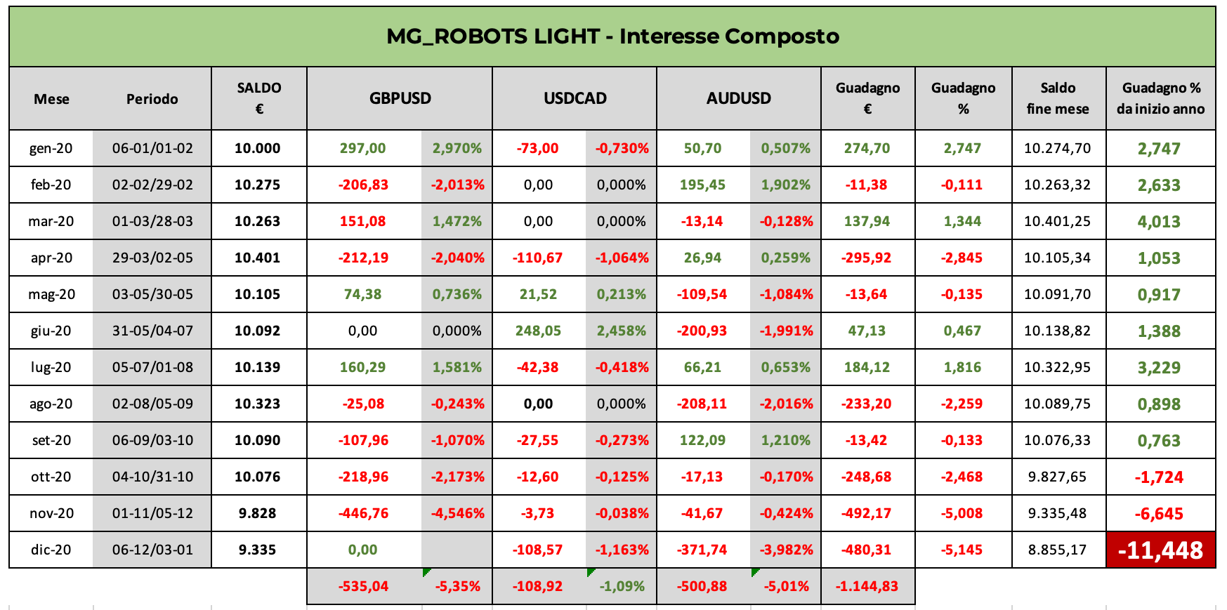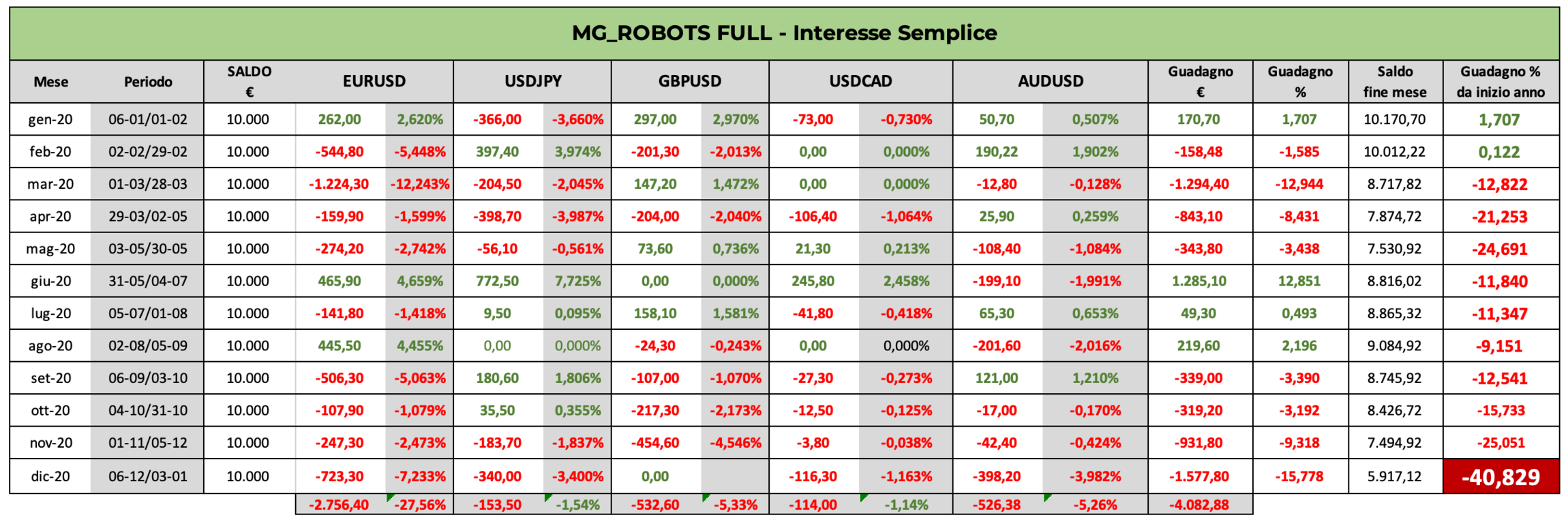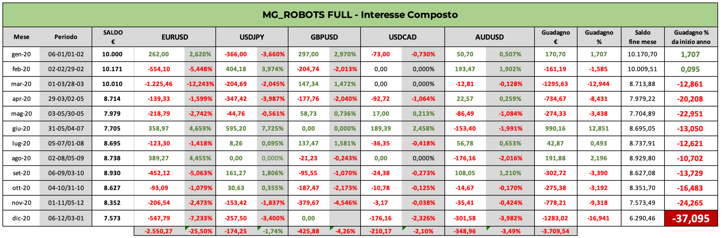 La versione FULL prevede di utilizzare tutti e 5 gli MG_Robots: EURUSD, USDJPY, GBPUSD, USDCAD e AUDUSD.