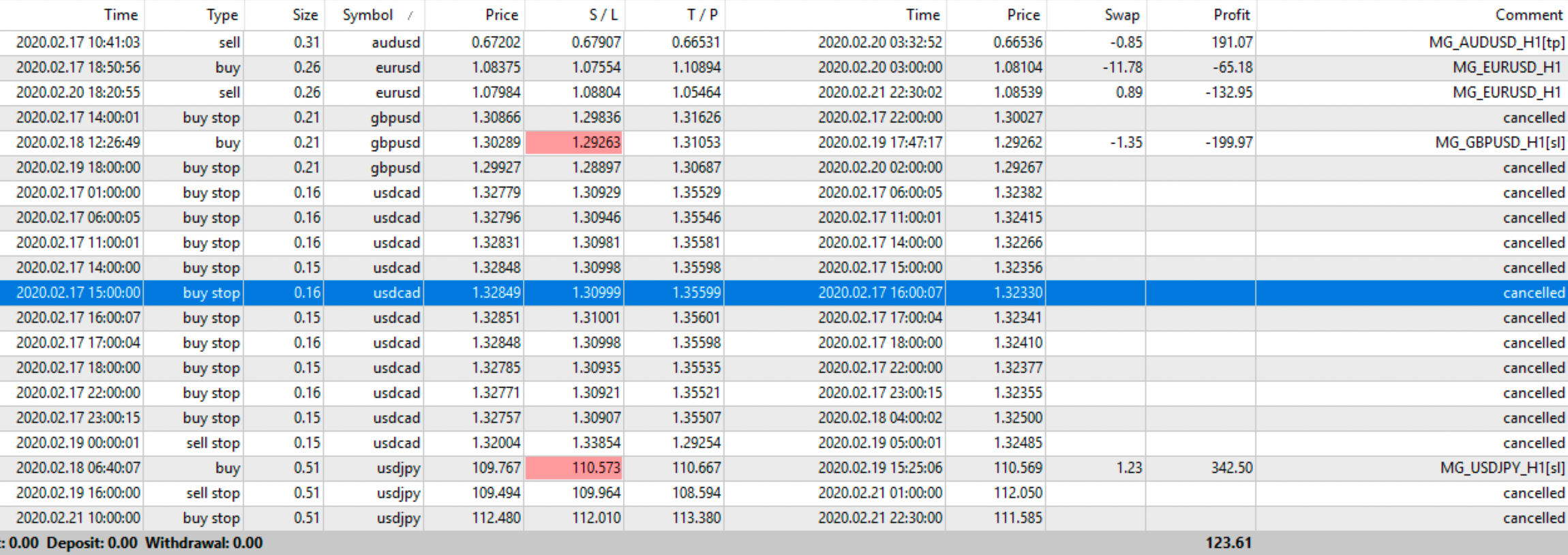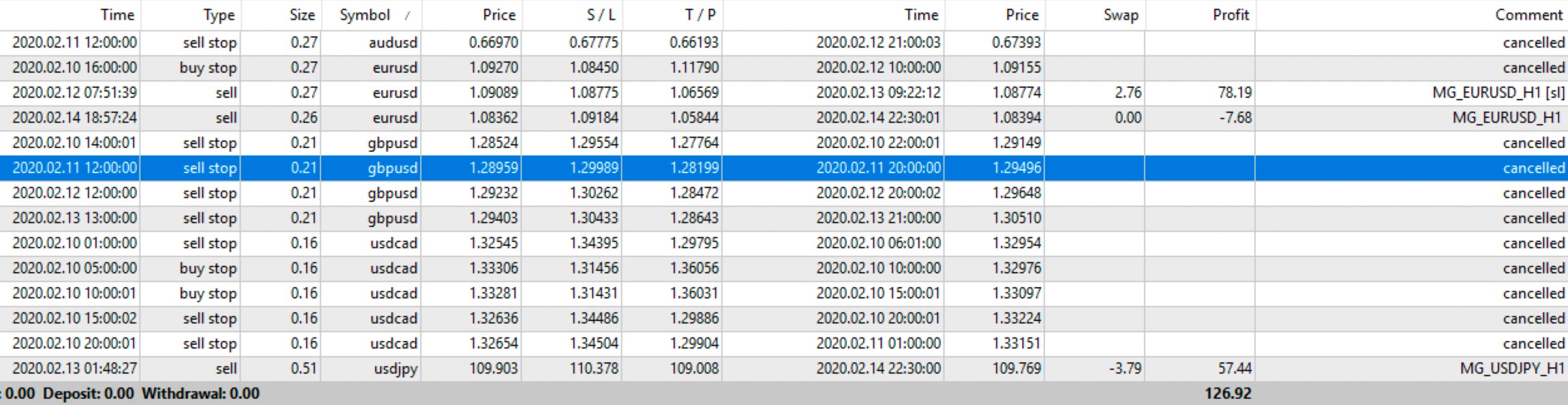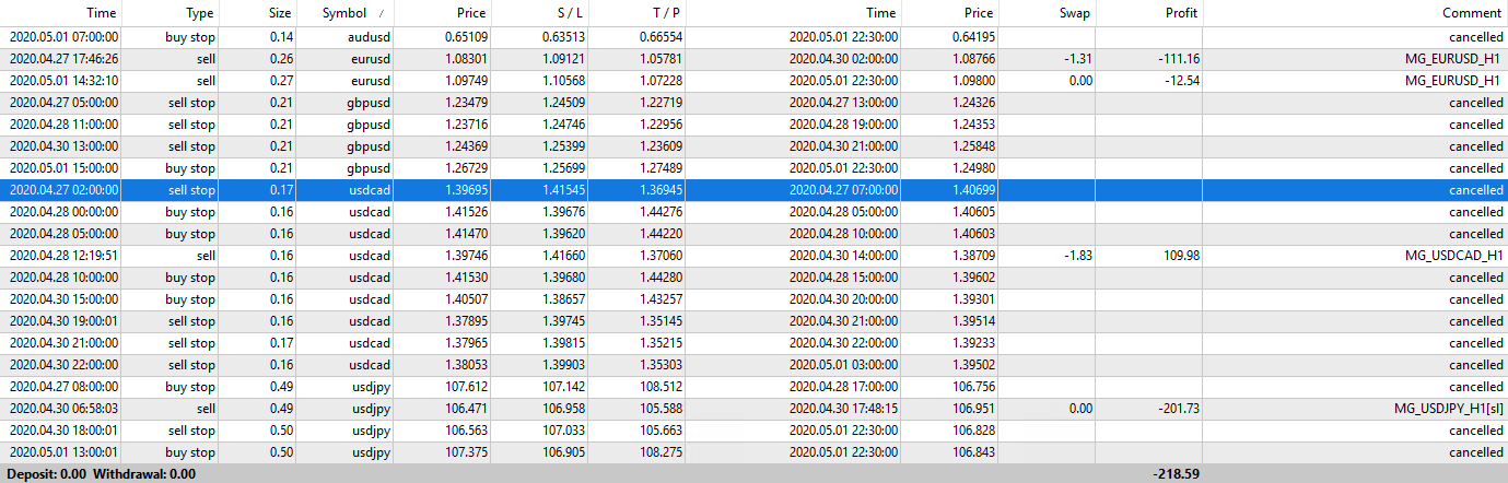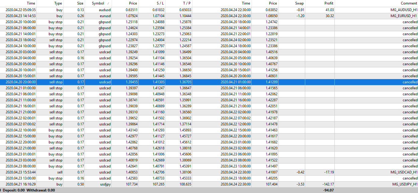 La versione FULL prevede di utilizzare tutti e 5 gli MG_Robots: EURUSD, USDJPY, GBPUSD, USDCAD e AUDUSD.
