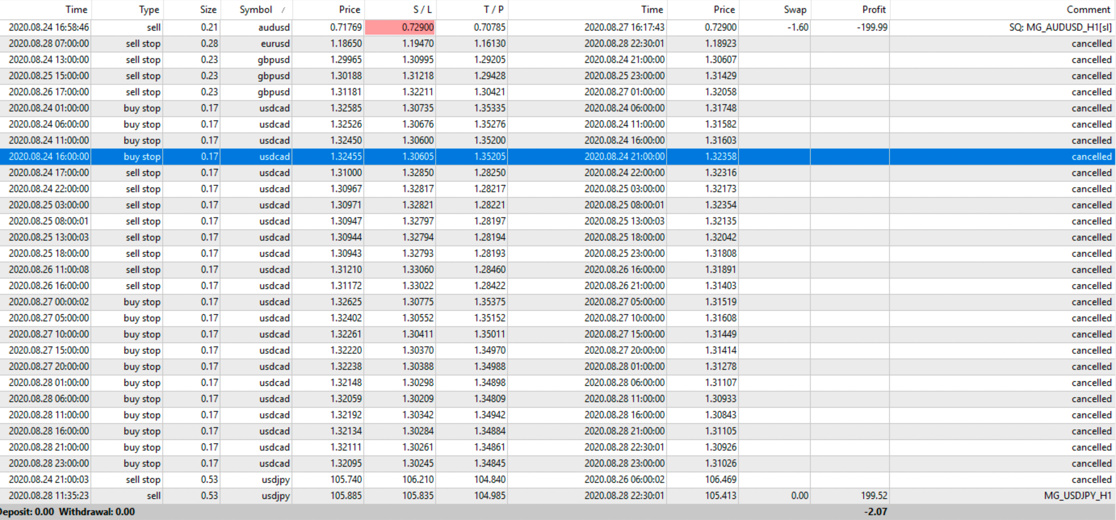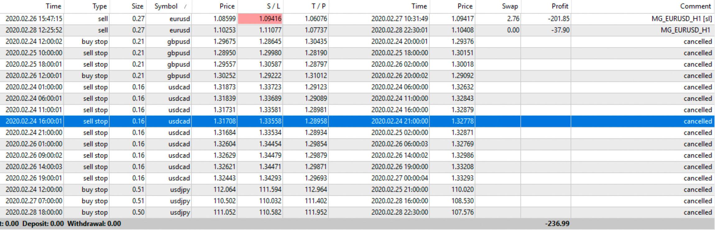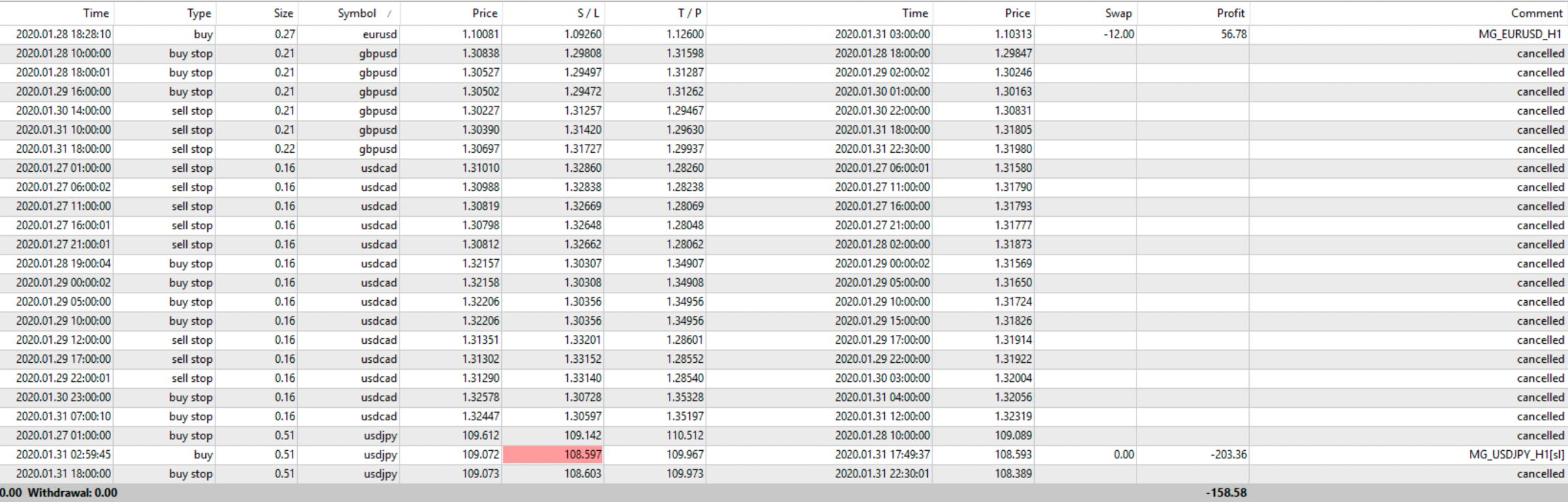 FULL: Profit/Loss: -2,37%     N. Trades eseguiti: 2     N. Trades Positivi: 0     N. Trades Negativi: 2