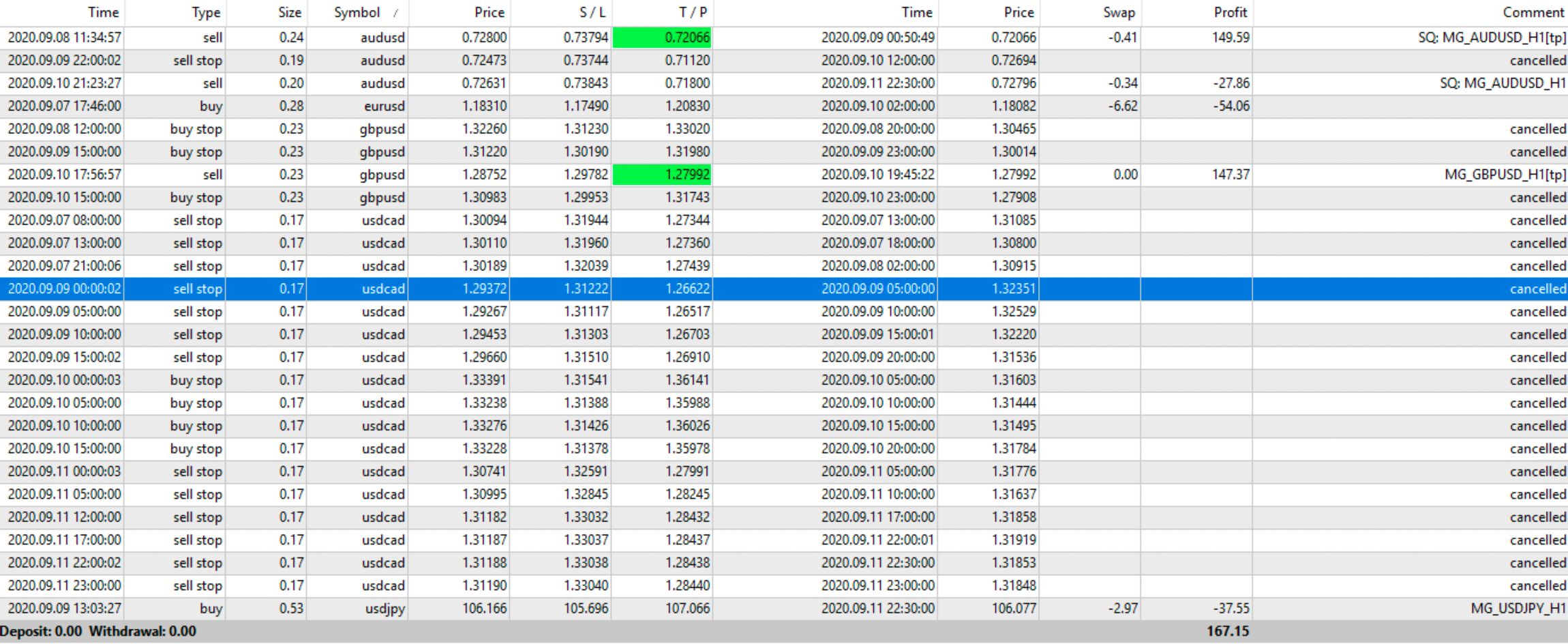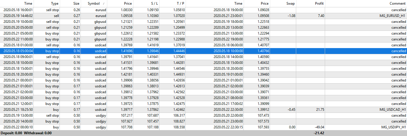 In questa pagina trovi i risultati ottenuti dagli MG_Robots per ogni settimana dell'anno.