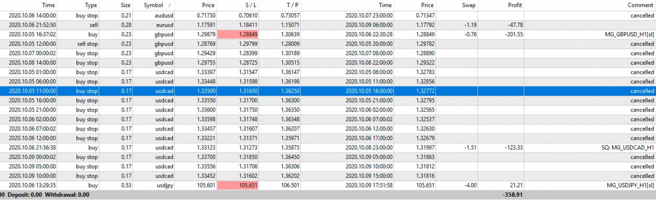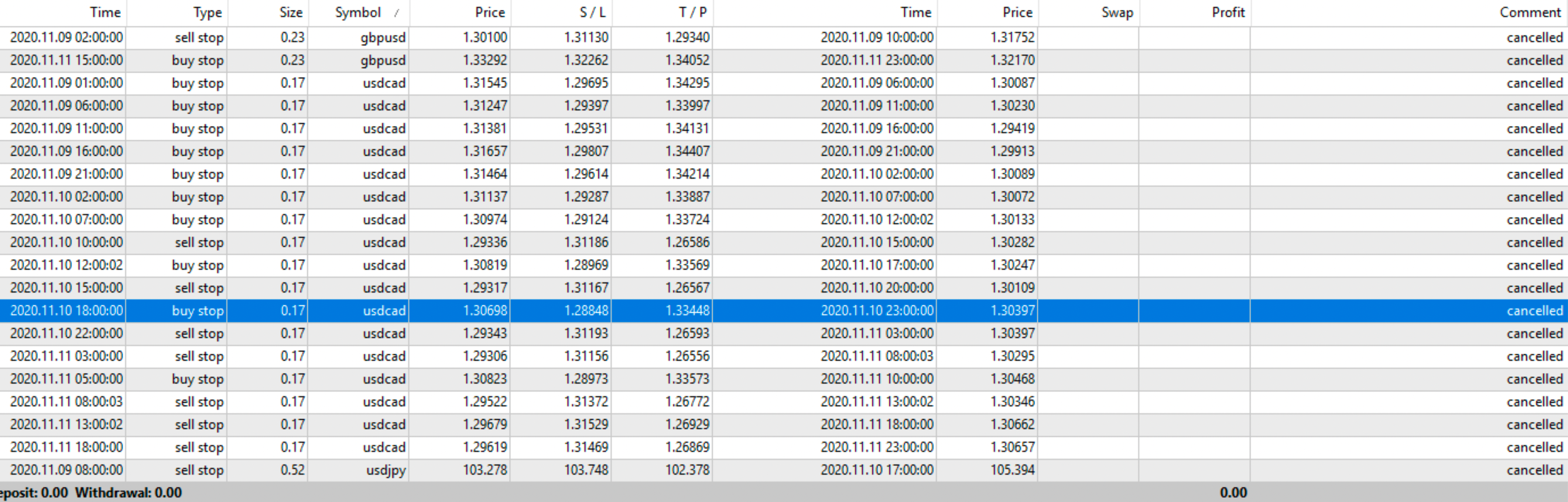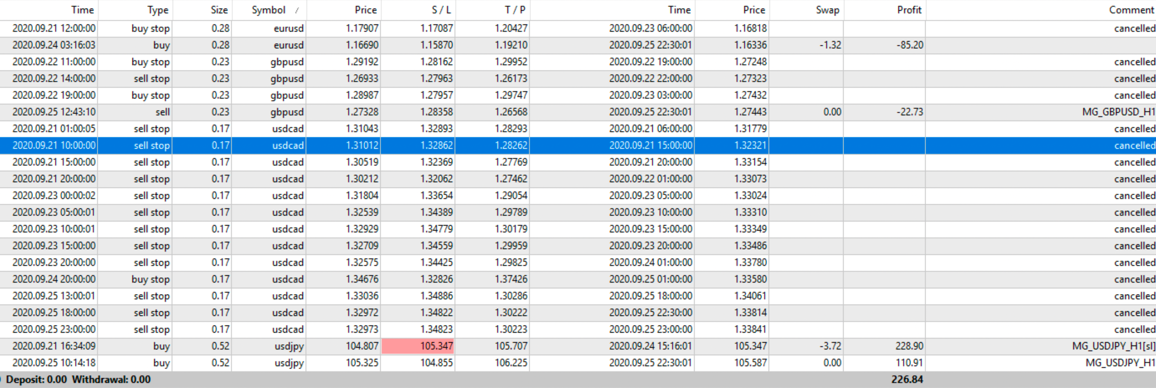 N. Trades +: 10