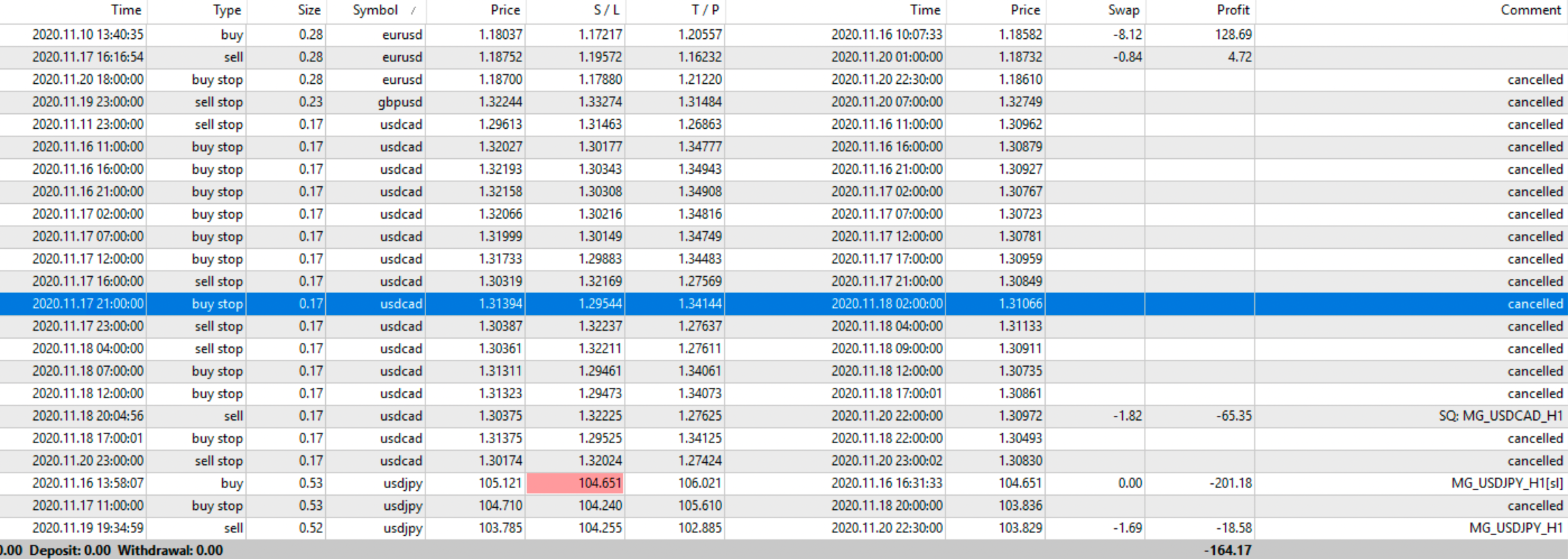 N. Trades +: 21
